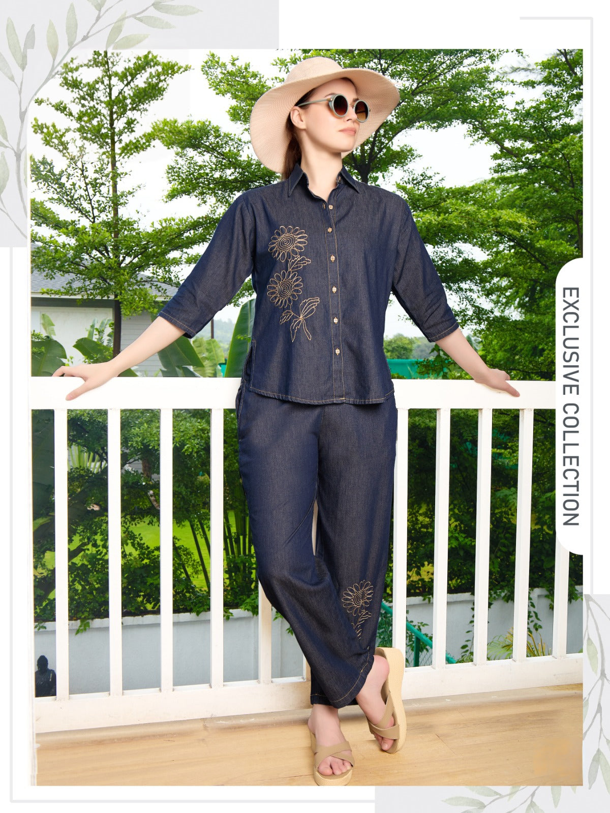 Turn every day into a style statement with our Embroidered Bloom Denim Co-ord Set. Crafted from buttery-soft premium denim, this coordinated shirt-and-pant duo is designed for women who love comfort, elegance, and effortless chic.