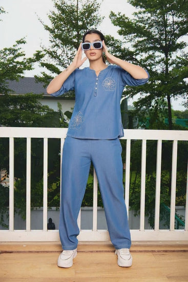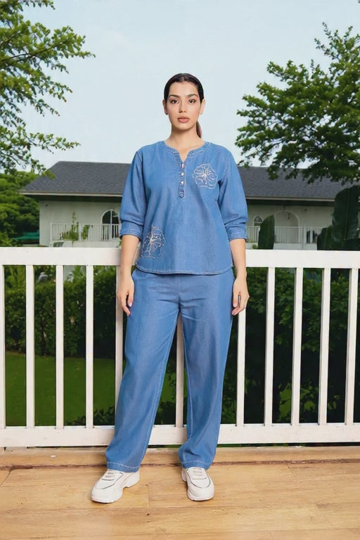 ✨ Exclusive Blue Denim Embroidered Co-ord Set ✨